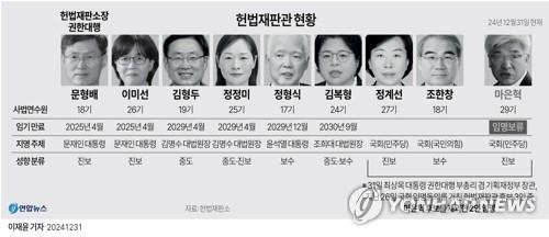 [그래픽] 헌법재판관 현황 - 최상목 대행 헌법재판관 2명 임명