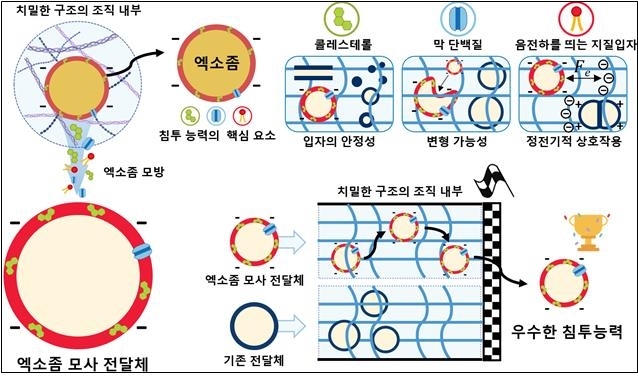 인체 신호전달 물질인 엑소좀에 착안해 약물 침투가 어려운 고형암 같은 조직 내부를 효과적으로 이동할 수 있는 새로운 약물 전달체가 개발됐다.