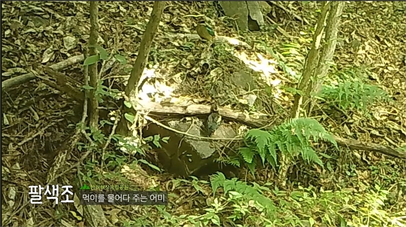 한려 해상국립공원의 양육 중인 팔색조 가족
