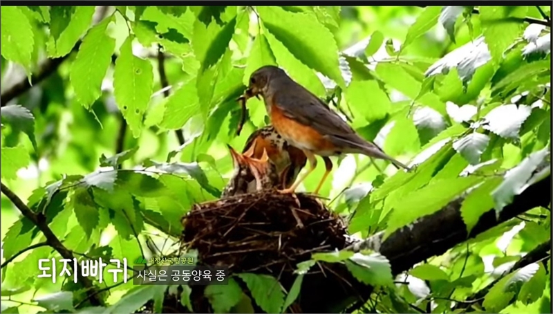내장산 국립공원의 공동양육 중인 되지빠귀 가족들