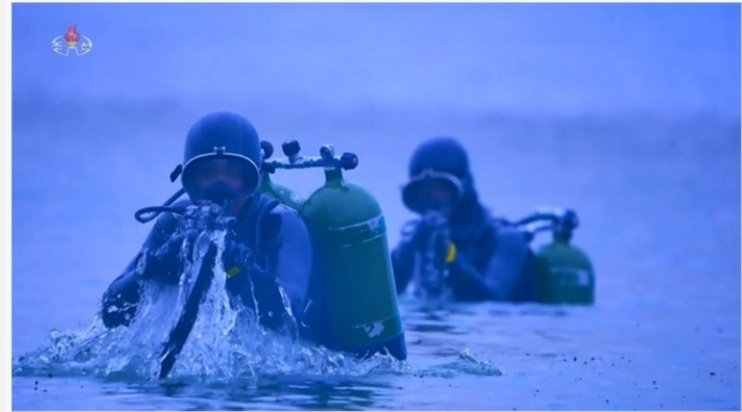 훈련 영상에서는 군인들이 잠수함을 빠져나와 사격준비하는 모습도 상영되었다.
