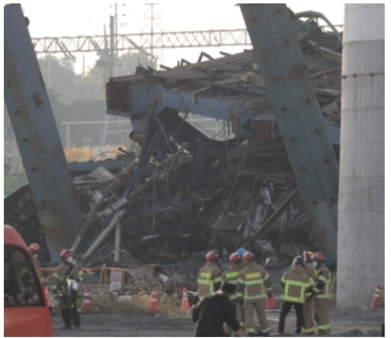 울산화력발전소 붕괴 현장에 시신수습 3명외 사망 추정 2명, 실종 2명 아직 매몰 상태