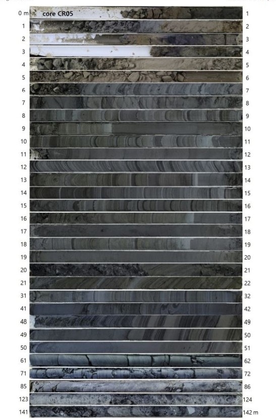 한국지질자원연구원에서 시추한 142m까지의 코어 사진