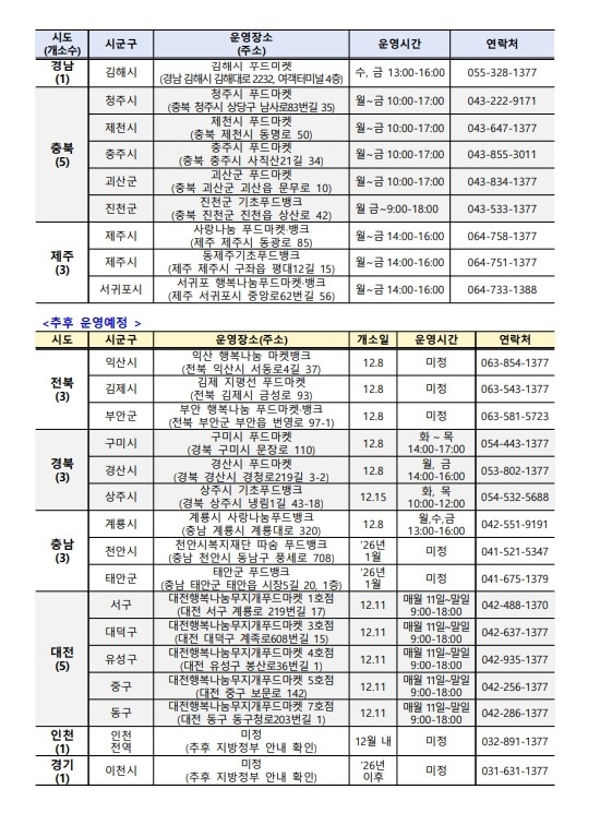 ‘먹거리 기본보장 코너’는 생계가 어려운 국민을 선제적으로 보호하기 위해 마련된 사업이다. 기존에 운영하고 있던 푸드뱅크·마켓을 중심으로 운영되며, 12월 1일 전국 56개소를 시작으로 12월 중에 약 70여 개소에서 시범 운영될 예정이다. 이후 지속적으로 운영 지역을 확대해나갈 계획이다.