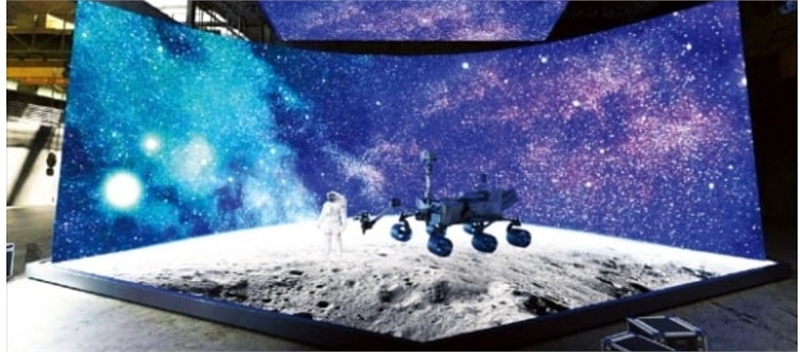 LG전자 LED 사이니지의 가상 배경을 통해 달 착륙 상황이 재현되고 있다. (사진 : LG전자)