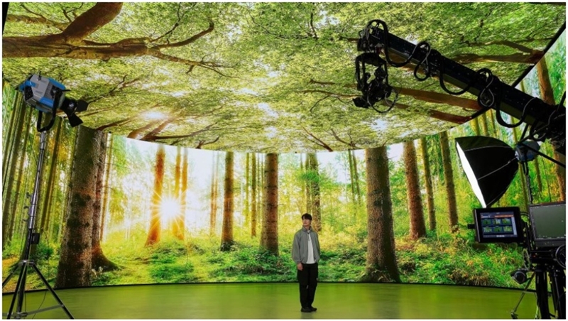 버츄얼 스튜디오 내부 삼성 더월의 지름은 20m, 높이 7m, LED전광판 대각선 길이 22m로, 1,650㎡ 500평 규모 스튜디오 전체를 타원형으로 이루고 있다.