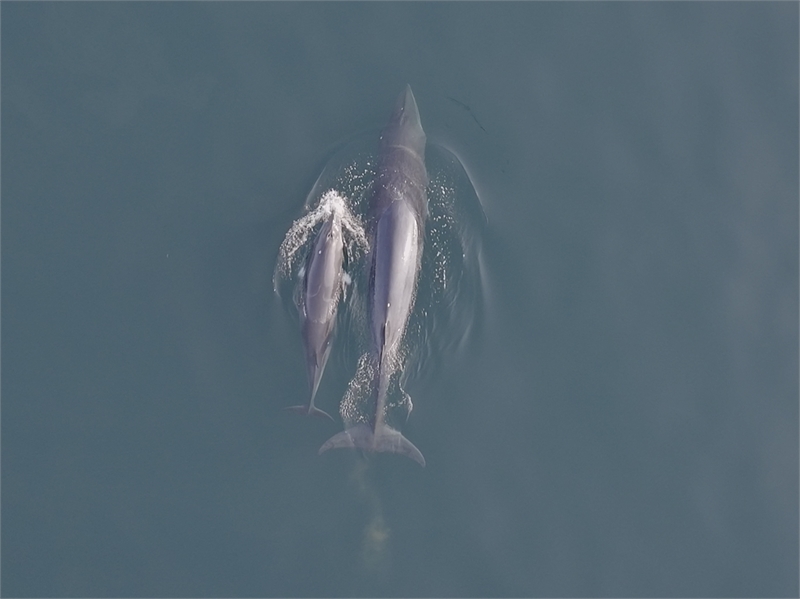 밍크고래 3마리 중에서 2마리는 어미와 새끼로 확인되었으며, 수과원 조사팀은 어미 밍크고래와 새끼 밍크고래의 이동 모습을 드론으로 기록했다.