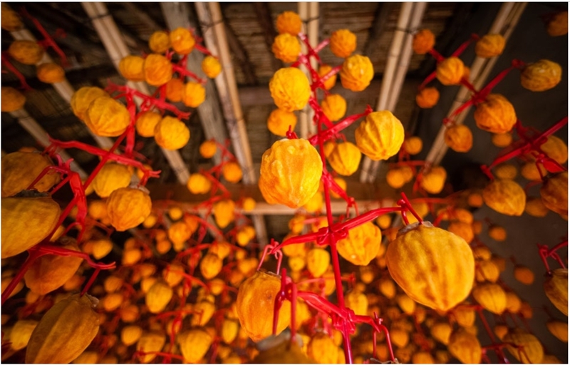 천정과 처마에 매달려 건조되고 있는 산청 곶감.