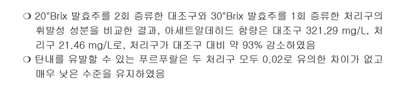 또한, 소규모 양조장에서 사용하는 단식 증류기로 목표한 도수와 향미를 갖춘 과실 증류주를 생산할 수 있어 시설 투자와 에너지 부담이 적은 편이다.