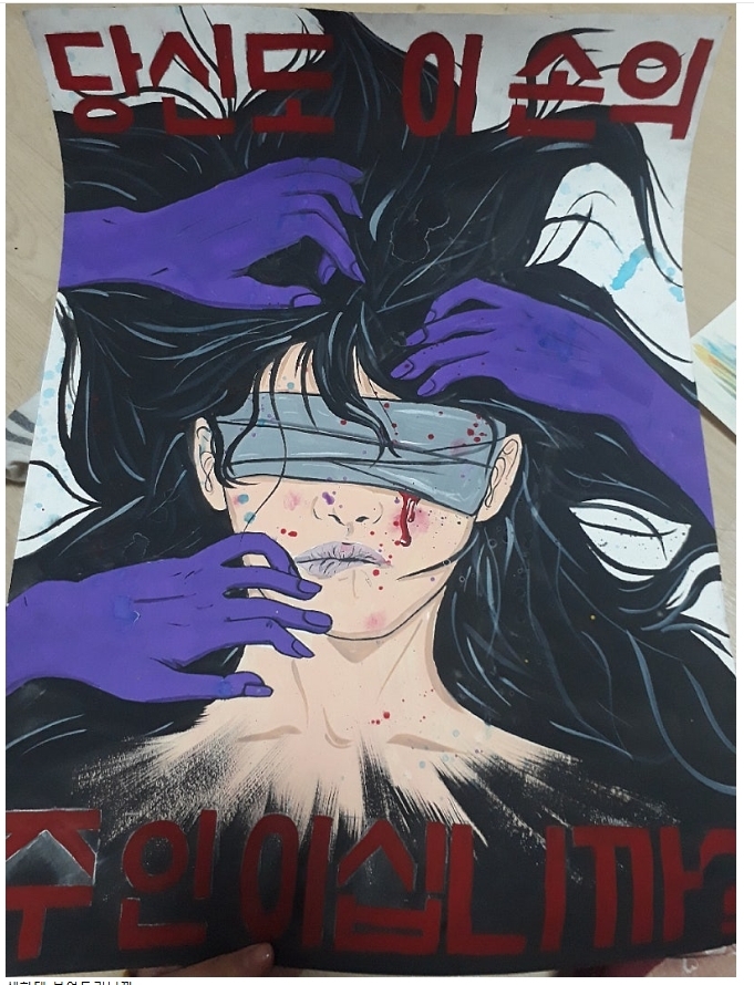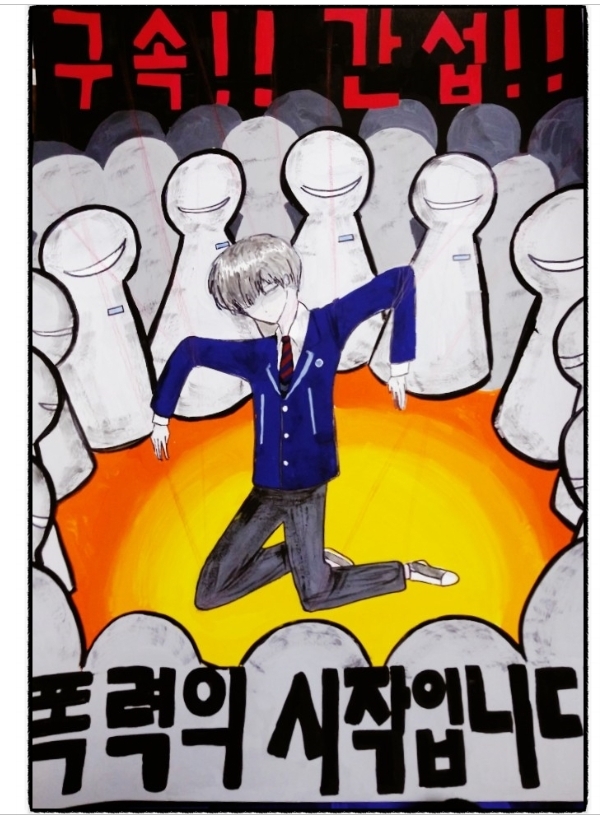 학교 폭력을 고발하는 포스터와 시위.