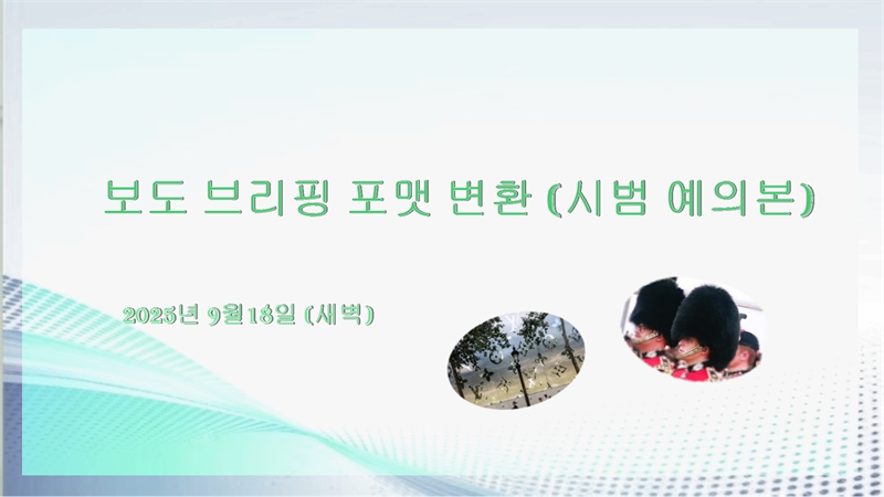 보도 브리핑 포맷으로의 변환을 앞 두고 시범실험본 (외신)
