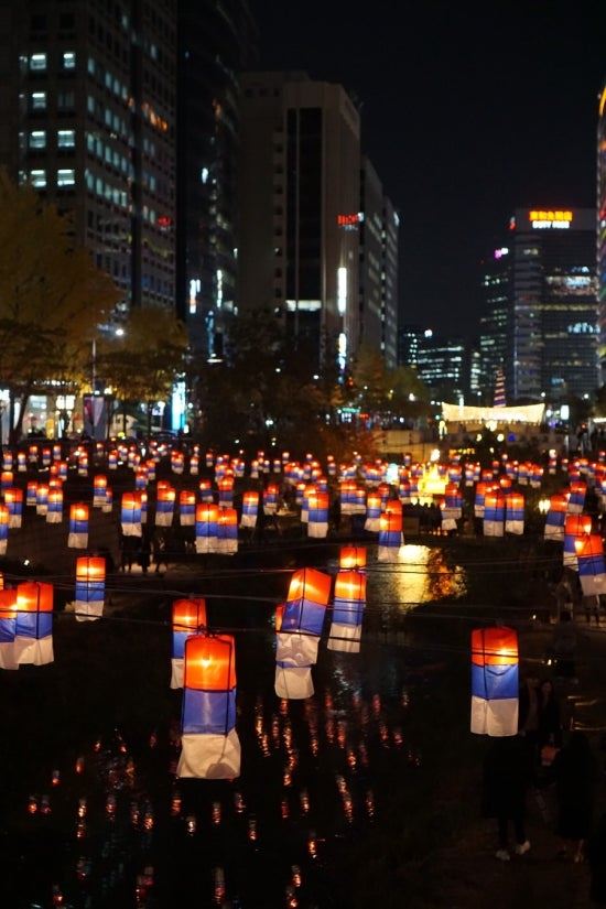 서울시의 광화문, 청계천 등지의 서울빛초롱축제 등에 달아놓은 청사초롱.