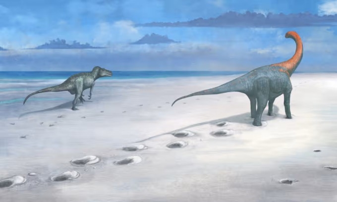 케티오사우루스와 메갈로사우르스가 어떻게 발자국을 만들었을지 상상했다는 그림. ( by Mark Witton)