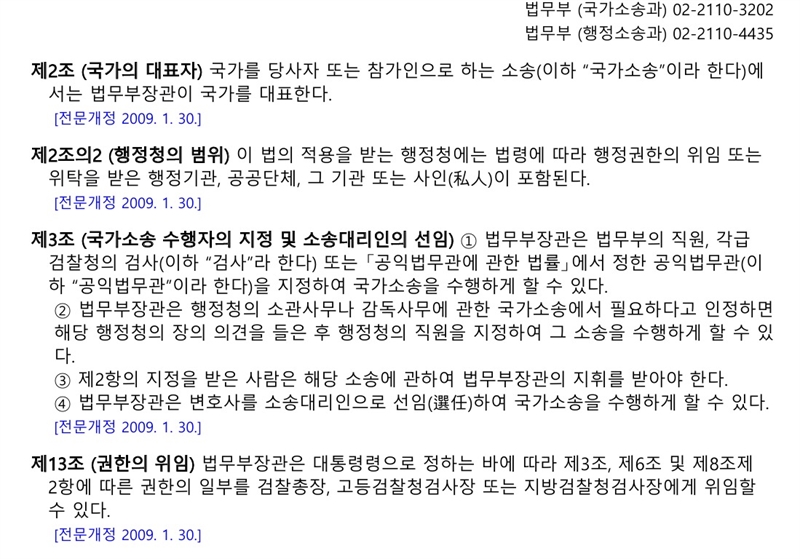 2. 소갑 제2호증 국가소송법 제2조, 제2조의2, 제3조, 제13조