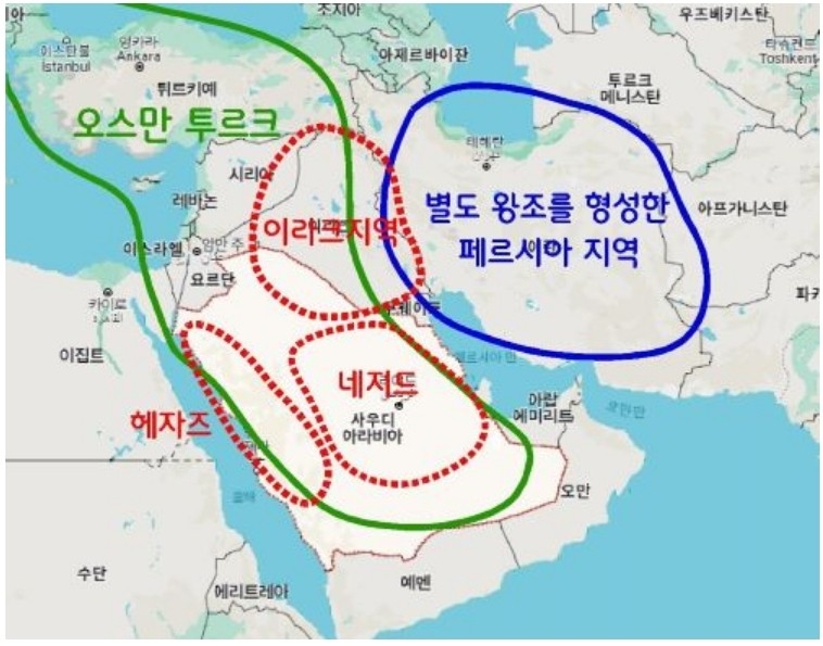 1차 대전 직전의 아라비아 반도 및 페르시아만 정황.