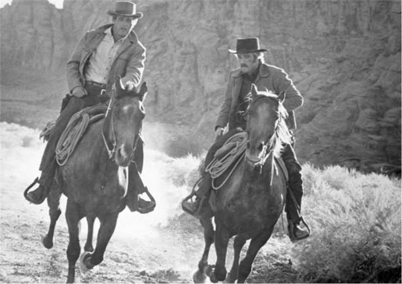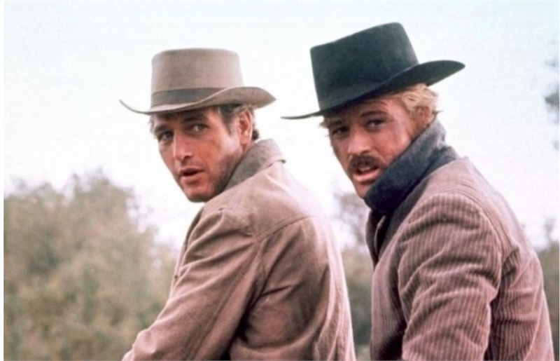 <내일을 향해 쏴라> 좌측 벝치 캐시디(Butch Cassidy)역 폴 뉴먼과 우측 선댄스 키드(Sundance Kid)역 로버트 레드포드. 산골짜기 은행털이 갱단(The Hole In The Wall Gang)의 두목과 부두목 둘이 전부.