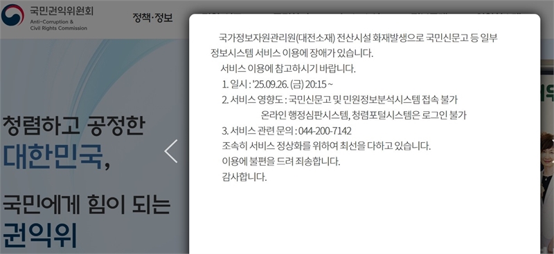 국민권익위원회는 홈 페이지를 통해 국민신문고 등 일부 정보시스템 서비스 이용에 장애가 있다는 사실을 게재하고 있다. 현재 행정안전부 홈 페이지는 접속이 불가능한 상태다.