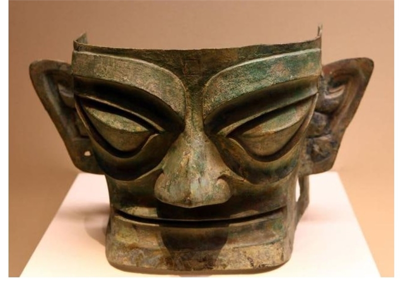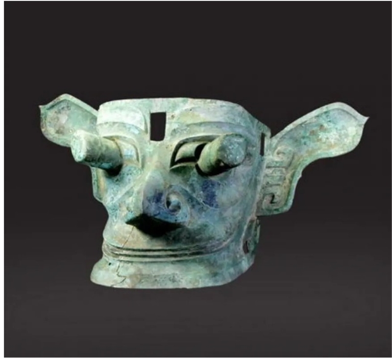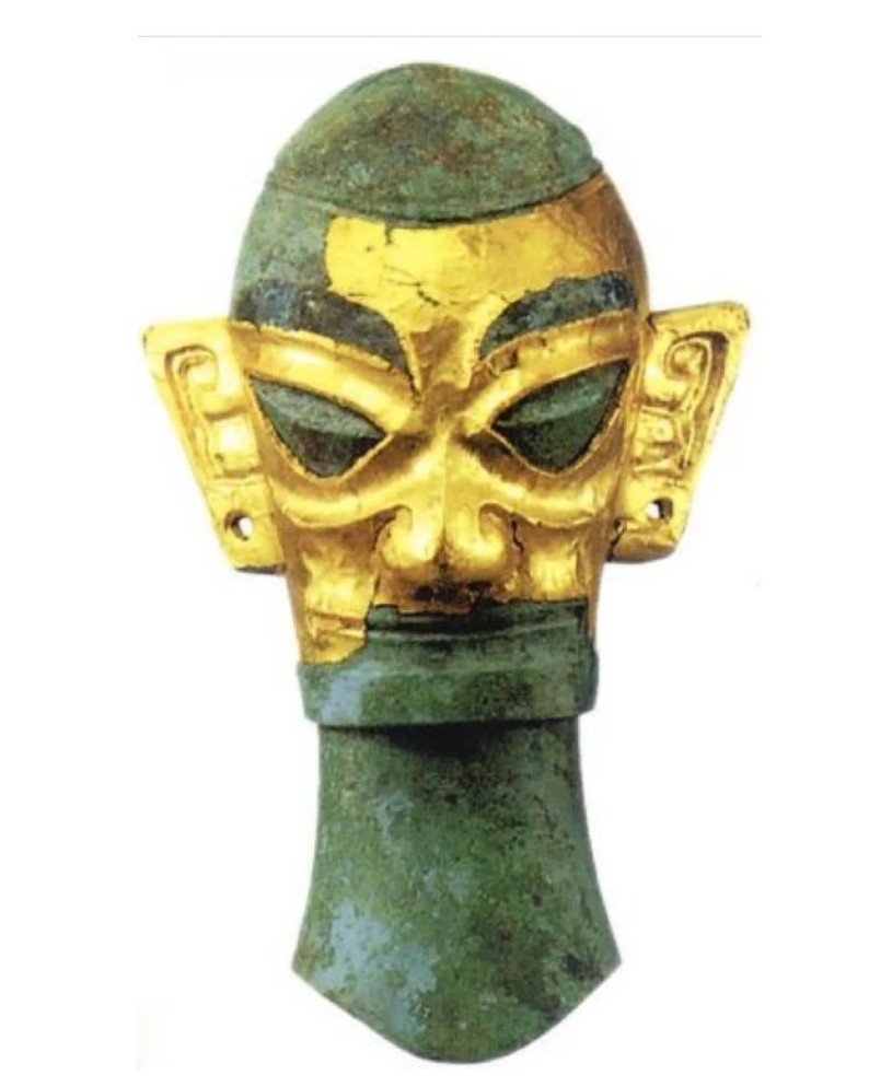 샨싱두이에서 발굴된 (두 눈에 말뚝이 박혀 있는) 청동가면상.
