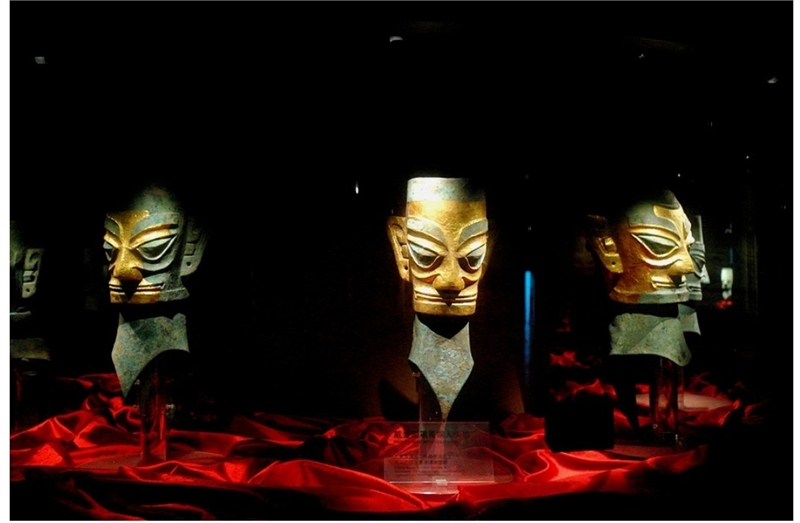 샨싱두이(三星堆)는 양쯔강(揚子江) 중류인 쓰촨성(四川省) 광한시(廣漢市)에서 서북쪽인 야쓰허(鴨子河)와 마무허(馬牧河) 등의 두 강 사이에 자리잡고 있는 유적지명으로, 중국인들에게 황허문명의 중원과도 떨어진 곳에 원숭이도 피해가는 오랑캐들의 지역으로 잘못 알려져 왔던 지역에서 발견된 청동 유물들이다.