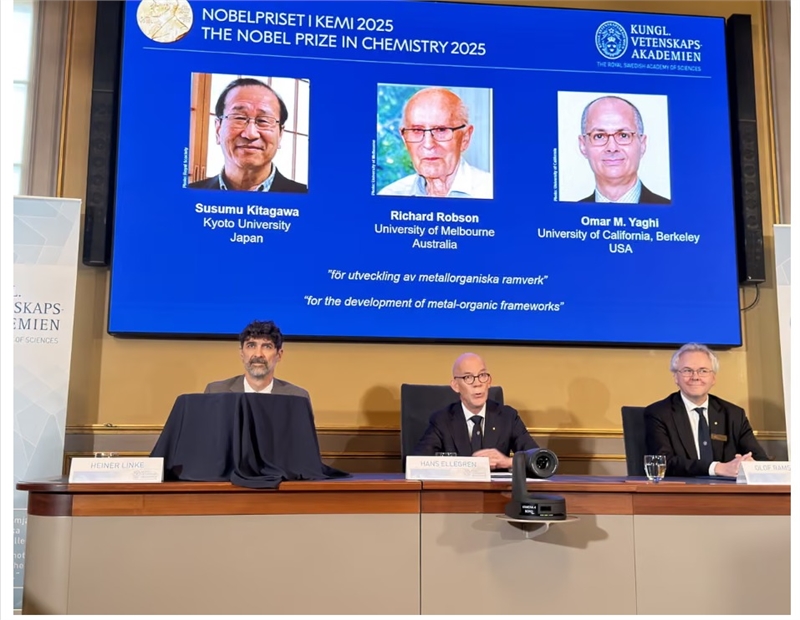 Susumu Kitagawa, of Kyoto University, Richard Robson, of the University of Melbourne, and Omar Yaghi, of the University of California, Berkeley, shared the 11m Swedish kronor (about £871,400) prize awarded by the Royal Swedish Academy of Sciences in Stockholm.