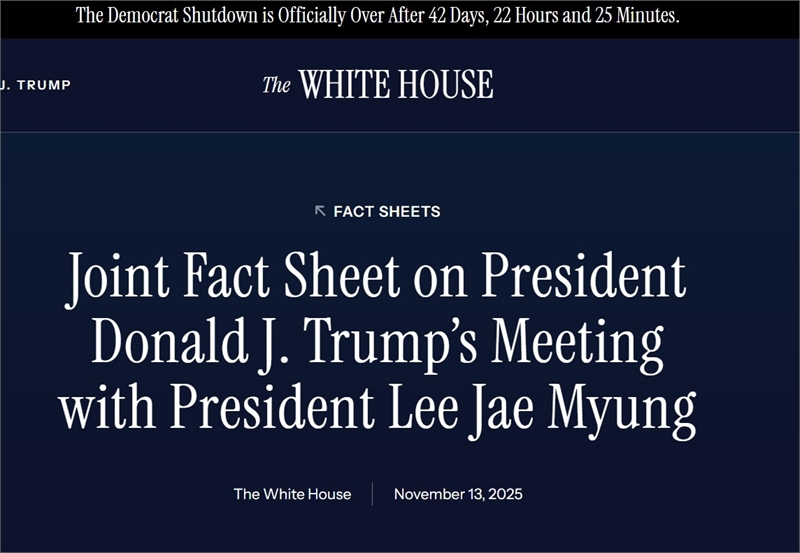 미국 정부도 지난달 29일 '25 경주 APEC' 한미 정상회담에서 양국 정상이 합의한 무역 합의의 세부 내용을 현지 시간 13일 저녁 백악관 홈페이지를 통해 발표했다.