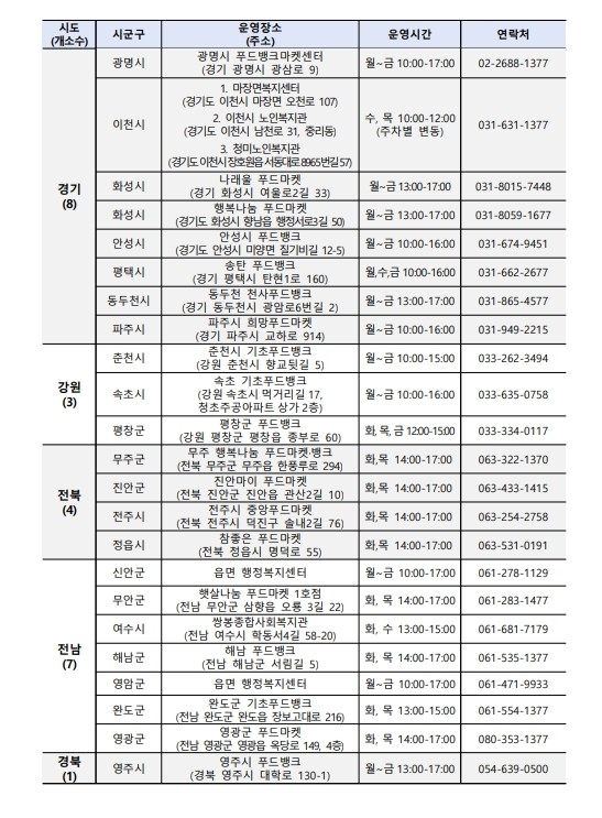 ○ (지원장소) 동주민센터·복지관·푸드뱅크 등에 코너 신규 설치