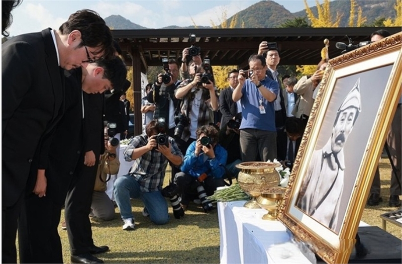홍범도 장군 유해 봉환 특사단이 2021년 8월 14일 카자흐스탄 크즐오르다 홍범도 장군 묘역에서 열린 추모식에 참석한 가운데 배우 조진웅이 국민특사로 동행했다. 2021.8.14